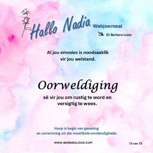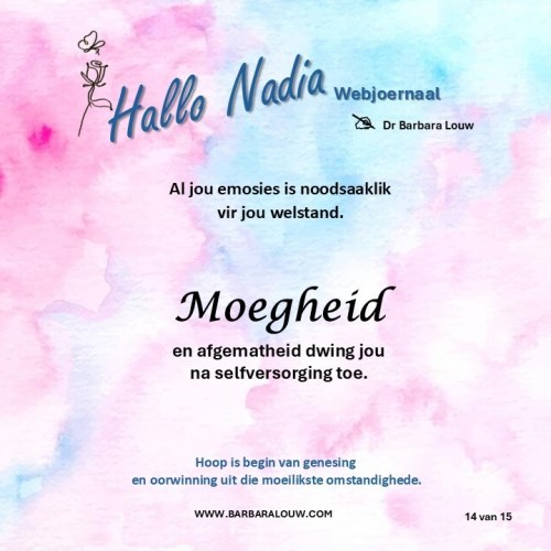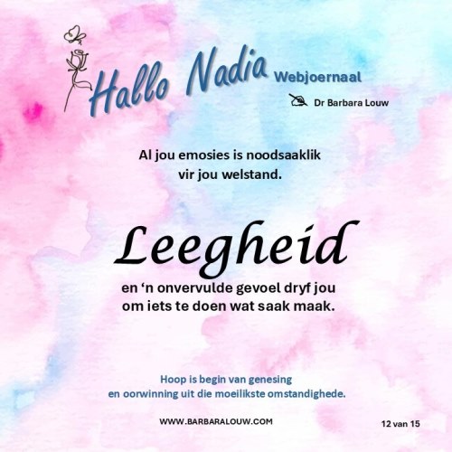Die bemoedigende Afrikaanse webjoernaal is vir die mens wat hom/haarself nooit as te nimmer as 'n slagoffer sal beskryf nie. Hoop is begin van genesing en oorwinning uit die moeilikste omstandighede.